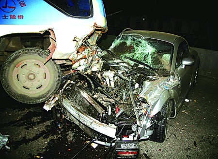 7日零時10分許,一車牌為魯BME5XX的奧迪TT跑車,在沿東西快速路由東向西方向行駛至三百惠附近時,因超車與前方一輛同向行駛的中巴車相撞,由于沖擊力巨大,兩車騰空而起飛出數(shù)米遠(yuǎn)后墜地,落在一輛原本與中巴車并列行駛的出租車前!拔疫沒反應(yīng)過來,就聽到‘砰’一聲,兩輛車從天而降,落在我的車前方不遠(yuǎn)處,我趕緊剎車。”事后接受交警調(diào)查的目擊者、一名出租車司機(jī)回憶道。據(jù)另一位目擊者王先生稱,當(dāng)時他駕車以每小時90公里的速度行駛,只見一個銀灰色的影子從自己車后竄到前面,估計(jì)車速在每小時140公里以上,該車與前面的中巴相撞時,沒有采取任何減速措施,基本是踩著油門撞上的,隨后就見到一白色的影子被甩出奧迪車,摔在路上。