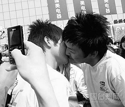 網(wǎng)友Luochen725發(fā)貼:前天下午,我剛好在路橋富仕廣場附近逛街,聽說有接吻大賽,就過去湊熱鬧。不看不知道,一看不得了,兩個男人在接吻,汗,有兩對,頓時被雷倒了!他們還按主持人的要求擺不同的姿勢,熱吻了一個多小時,我暈啊!情侶參加活動可以接受,不過對我來說,這么多人看著,覺得比較怪。而兩個大男人這么大庭廣眾之下接吻,我就真的是無語了。