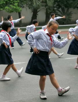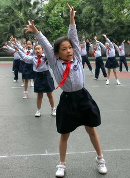 模仿古代“請(qǐng)”、“讓”、“孝”等系列動(dòng)作,編制成一套極有古典韻味的體操!再配上《漁舟唱晚》的背景音樂(lè),一邊“做操”一邊大聲朗誦國(guó)學(xué)名篇或者名句……昨日,記者獲悉,我市雙眼井小學(xué)耗時(shí)數(shù)月,創(chuàng)作出了一套“國(guó)學(xué)操”,將體操和國(guó)學(xué)的誦讀融二為一。據(jù)悉,這是目前全國(guó)第一套“國(guó)學(xué)操”。