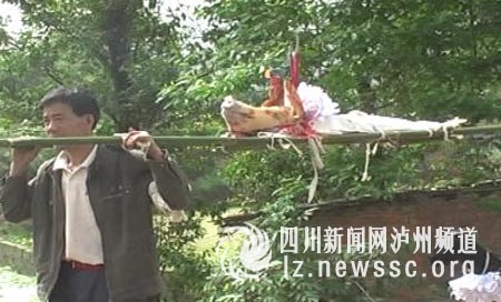 記者好奇地詢問了其中一位參加喪禮游行的村民。該村民說,“這是喪事,不過不是一般的喪事,而是喜喪。這是他們當(dāng)?shù)氐牧?xí)俗,只要是村里德高望重、壽終正寢的老人就可以辦這樣的喪事,意為圓圓滿滿地結(jié)束了一生。今天是喪禮的第二天,現(xiàn)在進(jìn)行的游行叫做“揚(yáng)名”,用意是要讓沿途的人都知道老人壽終的消息,同時(shí)也讓人們知道老人的兒女是何等孝順,這樣喜喪才能風(fēng)風(fēng)光光。游行中所抬的紙轎子叫做‘靈轎’,當(dāng)?shù)仫L(fēng)俗認(rèn)為可以將壽終者的靈魂通過法式寄放在這樣的轎子里。待游行結(jié)束,就要開始進(jìn)行‘飄燈’儀式了,將紙燈放入河中,隨波漂流,以此寄托對(duì)壽終者的思念。”