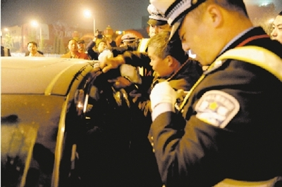 18日0時30分許,車后部左側(cè)的男子終于頂不住催淚瓦斯的氣味,把車門打開后摔在地面上,這名滿身酒氣的男子大聲說:“我是某某市支隊(duì)的民警,你們鄭州民警太過分了,都是同行。”隨后,車內(nèi)另外兩人也先后從車內(nèi)出來。司機(jī)最后被拖出來,民警把他架出來時,該司機(jī)流出的淚已把脖子下的前襟濕透。他們被帶到派出所時還連打噴嚏。