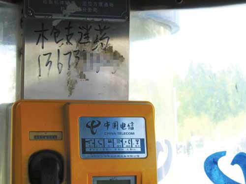 晚報嗎?我們附近的電話亭上有人涂寫非法廣告,上面甚至聲稱出售‘槍支迷藥’,你們來看一下吧!比涨,住在團結新村的市民王先生給本報打來熱線反映。