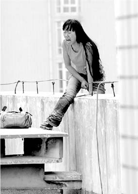“許昌一市民打來(lái)長(zhǎng)途電話稱,一女子在鄭州市友愛路中原商貿(mào)城中的中原商務(wù)樓頂,想跳樓自殺!弊蛉14時(shí)許,特巡警二大隊(duì)中隊(duì)長(zhǎng)劉洪剛接到110指令后,立即帶領(lǐng)3名民警趕到現(xiàn)場(chǎng)。只見,一長(zhǎng)發(fā)女子坐在樓頂?shù)膲,不停地打著電話,情緒很是激動(dòng)。