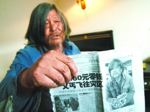 他,一名南京街頭的普通乞丐;他,曾在地震期間捐款三次感動(dòng)無數(shù)國(guó)人;他,曾坐著頭等艙作為貴賓出席新加坡華裔商人在震區(qū)希望小學(xué)的落成典禮,他就是被人親切稱為“義丐”的67歲老乞丐徐超。昨日,一位不愿透露姓名的男子將徐超接來北京,打算為其安排住處、做體檢并協(xié)助其在北京找工作安頓下來。