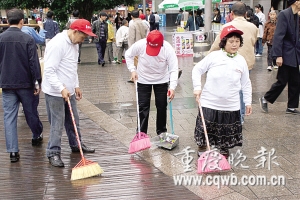 在“五一”期間,我市500多名“愛心亭殘疾人幫扶培訓(xùn)中心”的學(xué)員,分成30個(gè)隊(duì)伍,在渝中區(qū)、江北區(qū)、渝北區(qū)、南岸區(qū)、九龍坡區(qū)、沙坪壩區(qū)等主城街道,開展“我勞動(dòng),我快樂(lè)”的活動(dòng),上街頭義務(wù)清掃。(記者 李珩 攝影報(bào)道)