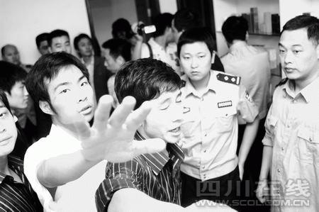 當民警指出媒體有采訪的權(quán)利,并要求在場人員配合執(zhí)法時,現(xiàn)場逐漸恢復(fù)了平靜,執(zhí)法人員開始逐一登記在場人員的身份證。就在這時,一名戴眼鏡、穿西裝的男子出現(xiàn)在房間內(nèi),他表現(xiàn)得非常不爽:“我們哪里違法了嘛?”對此,執(zhí)法人員告訴他涉嫌傳銷,正在調(diào)查,要求配合。但該男子態(tài)度非常強硬地告訴身邊人員,他們所從事的活動并沒有違法。見記者拍照,他再次召集人員強行阻止拍攝。民警要求他配合執(zhí)法,并出示公民身份證,“我是一個公民,有權(quán)不出示身份證!边@名梁姓男子道。記者隨后得知他是成都某大學(xué)大三的學(xué)生。