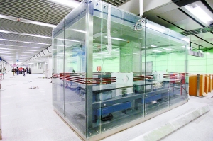 與現(xiàn)有地鐵線路相比,4號線的站臺上多了4個玻璃小屋子。據(jù)介紹,這些小屋子是地鐵站臺監(jiān)察亭,平時監(jiān)察亭內(nèi)將安排工作人員監(jiān)控站臺客流,但如果站臺遇到爆炸或恐怖襲擊等特殊情況,工作人員可以在監(jiān)察亭內(nèi)按下列車控制按鈕,阻止將要進站的列車進入站臺。