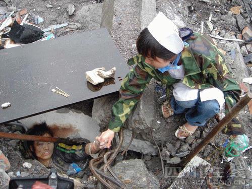 化妝師一眼就認(rèn)出了顧云仙,那張“最美女護(hù)士”照片已經(jīng)讓她變成了名人。去年5月14日上午,在北川中學(xué)救援的顧云仙被鏡頭定格下這樣的一幕:她腳穿涼鞋,蹲在廢墟邊上,左手提著一袋血漿,右手和一名少年的左手緊緊握著;而那名少年正被扭曲的鋼筋、預(yù)制板死死壓著,眼神里流露出對生的強(qiáng)烈渴望。網(wǎng)友們把這一幕稱為“汶川大地震中最感人的十大鏡頭”,顧云仙因此成了“最美女護(hù)士”,并獲得全國總工會頒發(fā)的“五一勞動獎?wù)隆薄?/p>