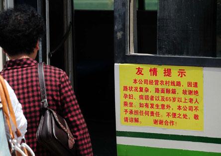 在新店至北峰客運(yùn)專線班車上,記者看到,車門上或者車內(nèi)并未張貼類似的提示或免責(zé)條款,沿途也不時(shí)有老人乘車。