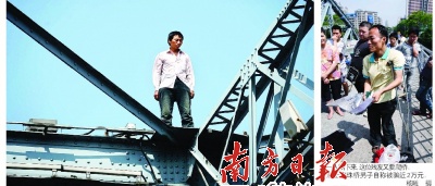 海珠橋,儼然成了“跳橋圣地”,F(xiàn)場(chǎng)幾位媒體同行揶揄說(shuō),全城應(yīng)該集體封殺海珠橋。是的,同樣是這個(gè)殘疾男人道出了大多數(shù)跳橋者的心聲,“只有這里,才能吸引社會(huì)的關(guān)注。”每一次海珠橋跳橋秀,全城媒體幾乎都要出動(dòng)。