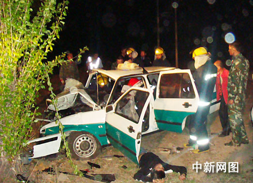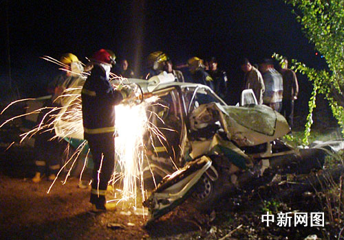 中新網(wǎng)雙鴨山5月12日電 今天凌晨零時(shí)40分,在雙鴨山市雙七公路雙富村路段,一輛出租車(chē)在行駛途中不慎撞上路旁的一棵大樹(shù)上,導(dǎo)致出租車(chē)駕駛室嚴(yán)重變形,車(chē)上7人2死5傷。