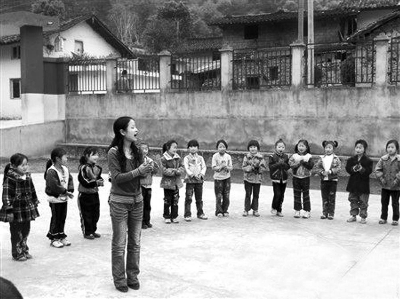 在離瀘定縣城30多公里的烹壩小學(xué),來自電子科大附小的文娟,無疑給這里帶來了最大的驚喜和快樂。因?yàn)樗窃撔Nㄒ灰幻魳防蠋,她給這里的孩子帶來了流行音樂,帶來了快樂的歌聲。
