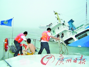 據(jù)廣州沙角海事處張杰副處長介紹,昨天下午4時(shí)許,該海事處接到報(bào)警稱“有船發(fā)生碰撞!”接警后,該海事處立即出動(dòng)包括海特1115號(hào)、海特1114號(hào)共8艘船只趕往事發(fā)海域。7分鐘后,他們便趕到了事發(fā)海域,而后立即開展搜救落水船員行動(dòng)。