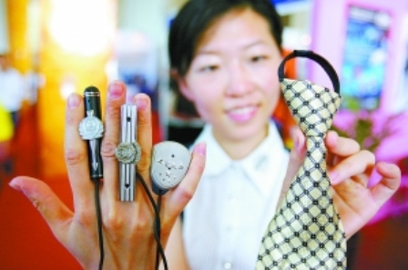 格子領(lǐng)帶、漂亮的徽章、黑色鋼筆帽……參展商頤信科技有限公司的工作人員介紹,任何物體經(jīng)過改裝都能藏進針孔攝像頭,作為存儲設(shè)備的主機與攝像頭分離,只有收音機大小,約有一袋奶的重量,可以放在兜里,接出來的電線就像隨身聽的電線,既方便又隱蔽。這種警務(wù)隨錄機又稱現(xiàn)場執(zhí)法取證儀,用于各主要執(zhí)法部門的現(xiàn)場音視頻執(zhí)法取證工作,可以連續(xù)攝錄6個小時。