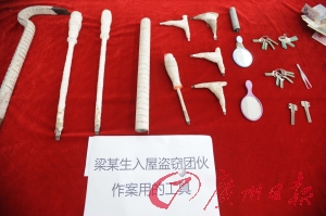 據(jù)警方介紹,該盜竊團伙從去年11月至今年5月,專偷城區(qū)八九層高的樓梯樓,男女配合,短短半年瘋狂作案130宗,作案地點遍布荔灣、越秀、黃埔、海珠和天河各區(qū)以及深圳等地。此案的破獲是省公安廳、市公安局部署開展“創(chuàng)平安,迎國慶”重點打擊專項行動后的重大成果,該案也成今年來廣州偵破的規(guī)模最大的盜竊系列案。這個大盜團伙的作案風(fēng)格非常奇特,周一至周五他們每天早上7時從深圳飛車來廣州作案,下午返回深圳,基本不在廣州停留消費,卻掠奪了廣州市民大批財富。