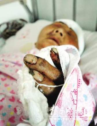 在南京軍區(qū)總醫(yī)院的一張病床上,記者見到正在輸液的李步琴老人,她頭部、手部纏著厚厚紗布。記者了解到,不連頭上的傷,老人手指、鎖骨、肋骨五處骨折,還餓了4天,老人現(xiàn)在已經(jīng)恢復了神志,思維敏捷,不能不說是個奇跡。老人告訴記者,5月19日傍晚她和工程隊開挖土機的吵了一架,因為他們挖壞了自己的菜地。當天晚上8點多鐘,突然有個人沖進她居住的泵房,進門就跟她要錢。剛開始她以為遭遇劫匪,無奈之下,只好從口袋里掏出一張皺巴巴的百元鈔票,可對方拿到錢后,仍不罷休,竟然揚言要火燒房子。還不問青紅皂白,甩起一根棍子就朝她頭上夯,她雙手抱住頭,棍棒繼續(xù)擊打在她的頭上、身上,直到她昏死過去。老人居住的地方?jīng)]有水電,因此當時光線黑暗,她沒有看清楚對方什么樣子,但是她記得對方毆打她的時候曾經(jīng)問過她:“以后還給不給開路?”這個“開路”是什么意思?老人解釋說,她的菜地占了挖掘機的路,她曾經(jīng)與對方交涉過多次。
