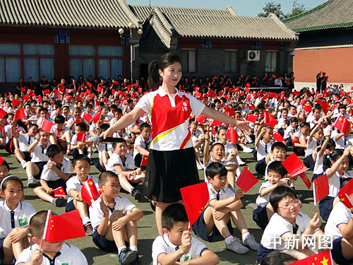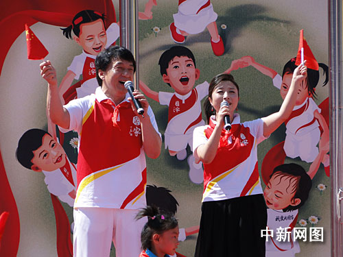 中新網(wǎng)5月31日電 5月31日,國慶獻(xiàn)禮歌曲《國家》的主唱成龍、劉媛媛分別來到北京市七一小學(xué)、府學(xué)小學(xué)及中國兒童中心,與孩子們共同參加了形式各異,精彩紛呈的慶六一活動(dòng)。