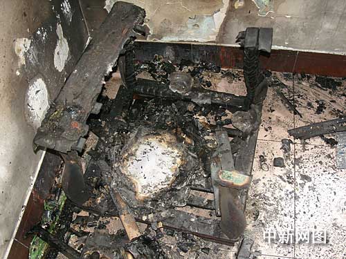 房子坐北朝南,有獨(dú)立樓梯,樓下有四間,樓上兩間外加一個平臺。房子失火后一片狼藉,面目全非,污水橫流,到處黑乎乎,雜亂無章。