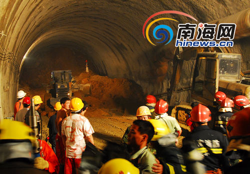 在施救現(xiàn)場,三亞市長市長助理、公安局局長王少山接受南海網(wǎng)記者采訪時說,由于塌方面在離隧道口400米的隧道深處,塌方處工作面狹窄,只能容下一臺挖掘機(jī),邊挖掘還繼續(xù)有土塌現(xiàn)象發(fā)生,影響到救援的速度,現(xiàn)已約運(yùn)出了3000余立方沙土。據(jù)現(xiàn)場消防官兵及其他施救人員反映,現(xiàn)已經(jīng)能隱隱約約聽被困人員發(fā)出來的求救聲音。