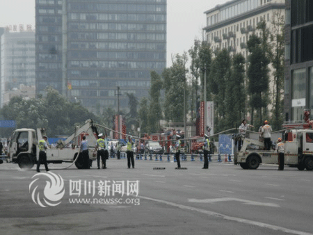 記者在現(xiàn)場(chǎng)未見到救護(hù)車輛。現(xiàn)場(chǎng)有近10輛消防車,交警正在疏導(dǎo)交通,成都主干道人民南路二段交通并未中斷。