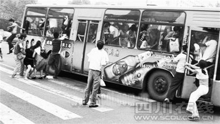 昨日上午8時(shí)左右,一輛8路空調(diào)車駛至成都萬(wàn)年場(chǎng)公交站時(shí),有位女乘客突然尖叫,車上大約60名乘客頓時(shí)慌作一團(tuán)。司機(jī)迅速將車停靠路邊并打開(kāi)車門,但仍有乘客打碎玻璃從車窗跳下“逃生”,1分鐘不到所有人全部逃離車廂。事后證明只是虛驚一場(chǎng),所幸沒(méi)有造成人員傷亡。