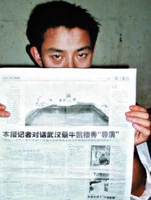 28歲,湖北孝感人,長(zhǎng)期在漢口建筑工地務(wù)工,做過(guò)小包工頭,因大包工頭欠薪,他曾于2007年底,站在高樓頂討薪,成功拿到欠款。如此討薪奏效后,從2008年初到今年5月,他又幫助其他農(nóng)民工策劃多起“跳樓討薪”事件,被當(dāng)?shù)孛襟w稱為武漢最牛跳樓秀“導(dǎo)演”。