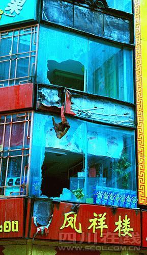 據(jù)了解,發(fā)生火災(zāi)的是鳳祥樓2、3樓的鳳祥眼鏡精品會(huì)所和生撈果餐廳,位于1樓的店招也被殃及。