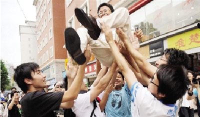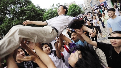 高考最后一門(mén)英語(yǔ)結(jié)束了,對(duì)緊繃的高三學(xué)生來(lái)說(shuō),這是一個(gè)歡樂(lè)的時(shí)刻,輕松的時(shí)刻。周南中學(xué)十幾名高三學(xué)生,剛走出長(zhǎng)沙一中考點(diǎn),便將班主任吳老師舉起拋向了空中。