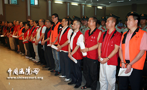 早晨8點左右,唐亞南等23名原審被告人由警車押送到庭,八點半左右,開始開庭審理。審判長宣布開庭后,唐亞南等23名原審被告人被帶入庭審現(xiàn)場,站到法庭的被告席上。法官當(dāng)庭宣讀了一審判決書,一審判決以集資詐騙罪判處原審被告人唐亞南死刑,剝奪政治權(quán)利終身,并處沒收個人全部財產(chǎn);以集資詐騙罪判處原審被告人丁魁元死刑,緩期二年執(zhí)行,剝奪政治權(quán)利終身,并處沒收個人全部財產(chǎn);以集資詐騙罪判處原審被告人李全才、鄧書杰、彭標(biāo)、李凱無期徒刑,剝奪政治權(quán)利終身,并處沒收個人全部財產(chǎn)。其他15名原審被告人分別以隱瞞犯罪所得罪、非法吸收公眾存款罪、集資詐騙罪被判處三年至十五年不等的有期徒刑;另兩名原審被告人被判非法吸收公眾存款罪,因情節(jié)輕微,免予刑事處罰。一審宣判后,唐亞南等19名原審被告人提出上訴。