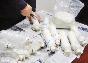 警方立即在高速公路口設(shè)卡,將兩輛車都攔了下來(lái)。一查,天賴轎車上果然有十幾個(gè)可樂(lè)瓶,裝著7公斤多海絡(luò)因。代光火的得力馬仔被一網(wǎng)打盡。