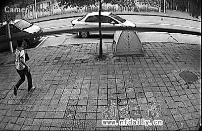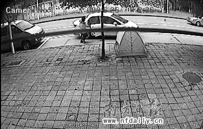 監(jiān)控錄像顯示,昨日上午10時22分20秒,一輛白色廣本飛度緩緩?fù)T跂|城街道東平街旭陽冷氣店外的馬路上。一名身高1.75米左右、身穿休閑衣服、腳著運(yùn)動鞋的男子,從副駕駛室下來,不動聲色地走進(jìn)旭陽冷氣店。監(jiān)控錄像還顯示,廣本汽車?yán)锶祟^晃動,車內(nèi)至少有4名同伴。