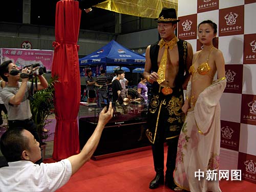中新網(wǎng)重慶6月27日電 (姜誠意) 27日,在此間舉辦的重慶婚博會上,一名醉意熏熏的男子借著酒意,在內(nèi)衣女模面前大膽越界拍照,甚至企圖手摸女模展示的天價黃金內(nèi)衣,嚇得模特花容失色并停止了展示。