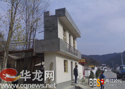 從正面看,這是一棟還算豪華的農(nóng)家兩層小洋房;但是從側(cè)面看,則是僅有1.5米的墻體,墻體背后是破舊的土坯房子。今天上午,這張被網(wǎng)友稱(chēng)為中國(guó)最!伴T(mén)臉?lè)俊钡恼掌,出現(xiàn)在華龍網(wǎng)兩江論壇上,引起網(wǎng)友的熱烈討論。