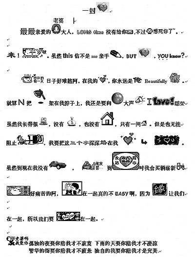 MM、菜鳥、恐龍、粉絲、BT……這些俏皮的“網(wǎng)語”一下子得到了很多年輕人的認(rèn)同!拔医(jīng)常把‘愛’字寫成‘じ☆ve’,里面有日文和英文,它能直觀形象地表達(dá)‘愛’的含義。”上海市第四中學(xué)初三學(xué)生君君說,她和同學(xué)在網(wǎng)上聊天時(shí)用的是“火星文”,她的QQ個(gè)性簽名也是“火星文”,她認(rèn)為這樣很可愛,也很有個(gè)性。