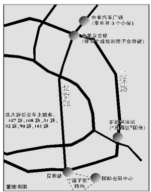 在網(wǎng)友“踩扁小強”的“號召帖”后,網(wǎng)友“黛琳”冷冷地回帖:“昆明站超級多……”“107路國際會展中心這段路超多,108路青年路車站不是一般的多!” “31、32路公交車上一般都是6人以上共同作案,男女皆有,年紀都在30歲到40歲。我見過最多的時候是10個小偷偷一個人。他們一般把被偷者圍在他們范圍內(nèi),然后1—2人下手,其他人掩護。慣用工具是刀,且刀上涂有麻藥。有一老者是摸到自己身上濕濕的才發(fā)現(xiàn)肚子已被劃傷,錢也被偷了”……一時間,網(wǎng)友紛紛跟帖發(fā)表各自了解到的小偷分布情況。