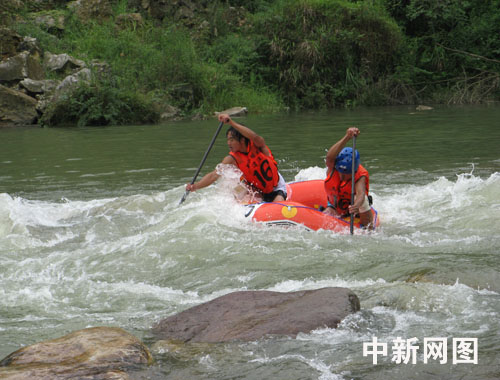 中新網(wǎng)成都7月11日電(張琳琳)7月11日,2009中國·都江堰(虹口)國際漂流節(jié)在都江堰市虹口景區(qū)拉開序幕。漂流節(jié)的的重頭戲是“自然水域漂流大賽”,來自美國、英國、澳大利亞、捷克、荷蘭的5支外國隊(duì)伍及遼寧、貴州、北京等7個(gè)省市的11支隊(duì)伍,總計(jì)45名運(yùn)動(dòng)員參加了比賽。比賽的項(xiàng)目為雙人橡皮艇長距離漂流,最終來自英國、捷克的代表隊(duì)分別獲得冠軍、季軍,中國貴州的2名業(yè)余選手獲得亞軍。