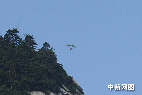 中新網(wǎng)陜西華山7月18日電(記者 冽瑋 )7月18日上午,號(hào)稱“中國第一飛人”、年已66歲的衣瑞龍駕駛無動(dòng)力三角翼滑翔機(jī)成功飛越了西岳華山。他是目前中國用三角翼飛翔的第一人,是至今國內(nèi)飛過高山最多的探險(xiǎn)家,也是他第五次飛越這座被譽(yù)為“天下奇險(xiǎn)第一山”。