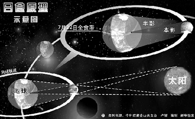 22日我國將出現(xiàn)500年一遇的大日食奇觀。整條日全食帶將首先從不丹國西邊進(jìn)入我國西藏南部和云南西北部,隨后掃向四川和重慶,接著進(jìn)入湖北和安徽;再向東掃向江蘇和上海,最后將從浙江的舟山群島入海而東去。被日全食帶掃過的地方都能目睹到日全食盛景。這次日食是從1814年至2309年在中國境內(nèi)全食持續(xù)時(shí)間最長(zhǎng)的一次日全食,最長(zhǎng)可超過6分鐘。
