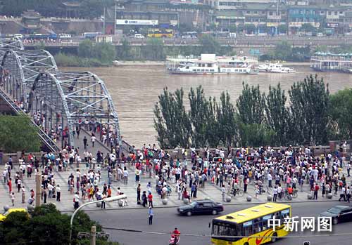 中新網(wǎng)蘭州7月22日電 (記者 劉薛梅) 為觀看500年一遇的罕見天象日全食,7月22日一大早,甘肅蘭州百年鐵橋中山橋廣場(chǎng)陸續(xù)聚集了近千人,借助西北師大天文臺(tái)提供的專業(yè)觀測(cè)設(shè)備,欣賞蘭州上空出現(xiàn)的日偏食。