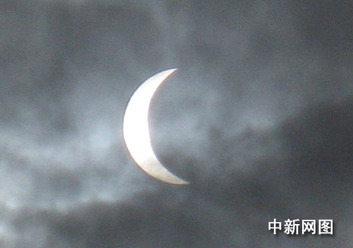 8:30分,在這座“黃河第一橋”中山橋及其廣場(chǎng)上,在人們紛紛抬頭仰望時(shí),太陽光亮逐漸暗淡;8時(shí)45分,天空出現(xiàn)大量薄云。伴隨云層越來越厚,天空變暗時(shí),西北師大符彥飆博士說,有薄云和空氣的輕度污染,觀測(cè)相切不是很明顯;9時(shí)15分時(shí),從蘭州可觀測(cè)到食甚,月球遮住太陽光面積達(dá)到最多,太陽“缺掉”80%。
