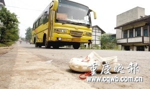 昨日上午11時,記者前往現(xiàn)場發(fā)現(xiàn)。車禍發(fā)生在水土鎮(zhèn)藥王街入口處的“鑫旭酒樓”門前,肇事車當(dāng)時由水土鎮(zhèn)往金刀峽方向行駛。盡管車禍現(xiàn)場已被交警部門處置,肇事轎車被拖走,但現(xiàn)場仍可見大量血跡遺留地面,一雙沾有血跡的女式白色涼鞋靜靜地躺在馬路中間。旁邊圍墻上,肇事轎車將其撞開了一個籃球大小的窟窿。