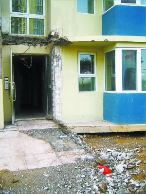 本報(bào)訊 據(jù)媒體報(bào)道,繼上海的“樓脆脆”后,京版“樓脆脆”也已現(xiàn)身——清河萊鎮(zhèn)香格里小區(qū)的11號(hào)樓門(mén)廳下陷,墻上破了兩個(gè)大洞,引起小區(qū)業(yè)主的擔(dān)憂和恐慌。今天上午記者在萊鎮(zhèn)小區(qū)的現(xiàn)場(chǎng)看到,塌陷的門(mén)廳已經(jīng)被拆卸。