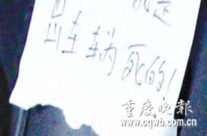 江北CBD、重慶市大劇院右側(cè)空壩,時常有人駕車到此游玩。昨日下午,一妙齡女子被發(fā)現(xiàn)橫尸于空壩上停放的一輛小轎車內(nèi),該車內(nèi)排擋桿旁還有一張神秘紙條,上面寫著“我是出車禍死的!睋(jù)目擊者稱,這輛小車在此處停了有3天。