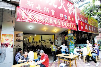 掛標(biāo)語火鍋店滿堂
