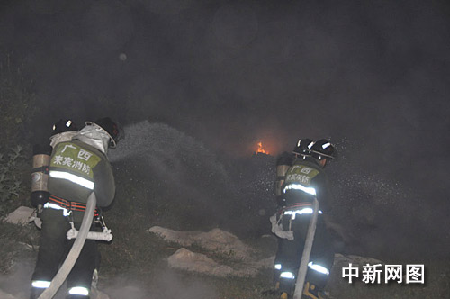中新網(wǎng)來(lái)賓8月10日電 (陳小勇 王剛) 8月10凌晨1時(shí)30分許,廣西來(lái)賓市興賓區(qū)物資總公司炸藥庫(kù)附近,一堆不明物體突然發(fā)生燃燒并產(chǎn)生大量煙霧,火勢(shì)逐漸向四周蔓延,嚴(yán)重危及到倉(cāng)庫(kù)內(nèi)存放的10噸炸藥。