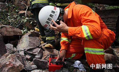 由于上萬方山石堆積,救援工作一直持續(xù)。為了確認廢墟下是否有被困人員,紹興市消防支隊啟用了音頻生命探測儀,兩名特勤消防隊員冒著再次塌方的危險深入現(xiàn)場探測生命跡象,經(jīng)過半個多小時的現(xiàn)場探測,未發(fā)現(xiàn)有生命跡象。
