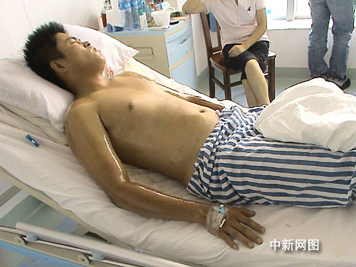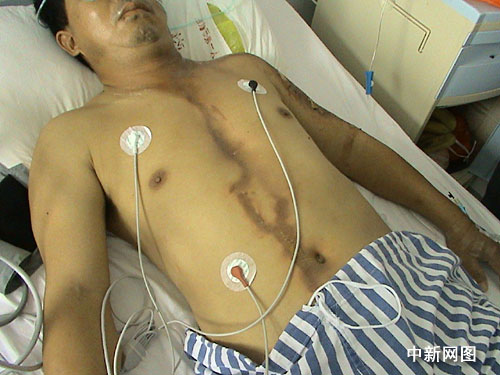 經(jīng)轉(zhuǎn)院治療后,黃世波病情趨于穩(wěn)定。主治醫(yī)生李挺介紹說,病人目前病情穩(wěn)定,雙肺呼吸不對稱疑出現(xiàn)肺爆裂,所以說話吃力,還需觀察心功能是否損傷。