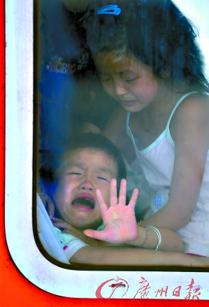 廣州火車站目前日均發(fā)送旅客11萬人次,返鄉(xiāng)兒童成主力軍。往重慶、四川等方向的列車上,有一半數(shù)都是返鄉(xiāng)兒童。前天下午,僅一趟至萬州的1008次列車上就有1000名孩子。