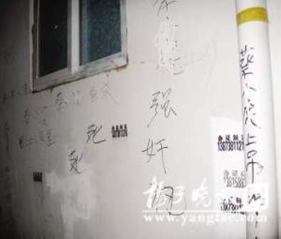 “看見(jiàn)兩個(gè)女子趁黑在墻上寫(xiě)東西,現(xiàn)在看來(lái)就是寫(xiě)這些東西了!币晃荒繐粽吒嬖V記者,前天晚上,趁著天黑,有兩名女子來(lái)到明園這戶(hù)居民家門(mén)前,開(kāi)始寫(xiě)東西,左寫(xiě)右寫(xiě),寫(xiě)了約摸有十幾分鐘就走了,昨天早上8點(diǎn)多,戶(hù)主起床開(kāi)門(mén)后,這才發(fā)現(xiàn)自家墻上及附近低矮的圍擋板上,均有指名道姓的罵人語(yǔ)句。記者看到,從戶(hù)主蔡先生家門(mén)兩邊向外,以及對(duì)門(mén)的圍擋板上,留有大黑簽字筆寫(xiě)下的罵人語(yǔ)句,諸如“蔡某某人渣”、“蔡某某缺德”、“蔡某某強(qiáng)奸犯”等等,還有一些更加不堪入耳辱罵的話(huà),讓人看了瞠目結(jié)舌。粗略數(shù)數(shù),多達(dá)十幾處。