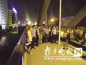 5日下午5點(diǎn)30分左右,正是下班的高峰期,丹陽(yáng)城區(qū)中心的云陽(yáng)大橋上車水馬龍,人流如梭。就在此時(shí),一名年輕男子手拿酒瓶,歪歪扭扭,面紅耳赤,推著一輛自行車,來(lái)到橋上。將車靠上橋欄后,該男子竟徒手攀爬橋拱,路人以為此人是維修大橋的,也沒(méi)有太在意,但不一會(huì),該男子居然爬到橋頂,大聲喊叫:“我要跳橋!”路上行人紛紛駐足觀望,很快大橋上就聚集了上百名路人,且越來(lái)越多的市民堵在橋上,開始替該男子擔(dān)心起來(lái),見男子左右搖擺,橋上市民驚叫聲不斷。大橋之上,很快出現(xiàn)擁堵現(xiàn)象,直至無(wú)法通行。有人立即報(bào)警。